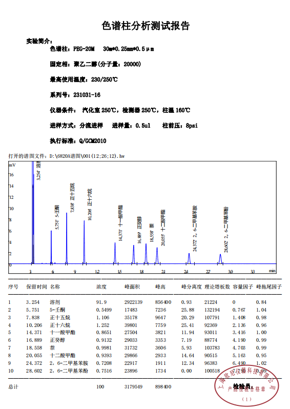 符合USP G14、G15、 G16、 G20、 G39指定固定液