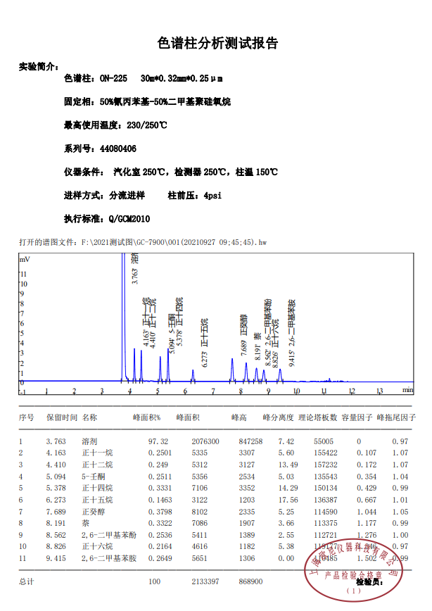 50%氰丙苯基50%二甲基聚硅氧烷,中极性固定相,最高使用温度230/250度