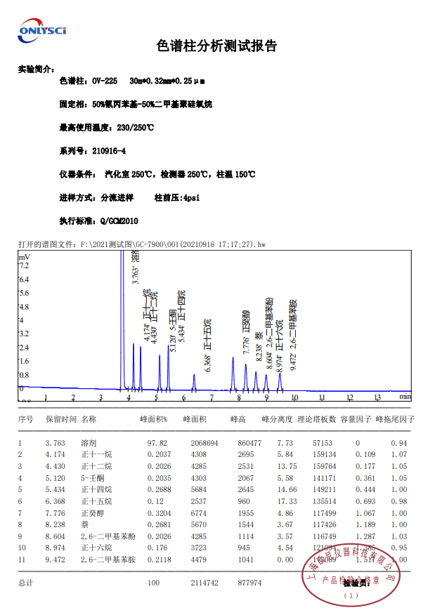 50%氰丙苯基50%二甲基聚硅氧烷,中极性固定相,最高使用温度230/250度